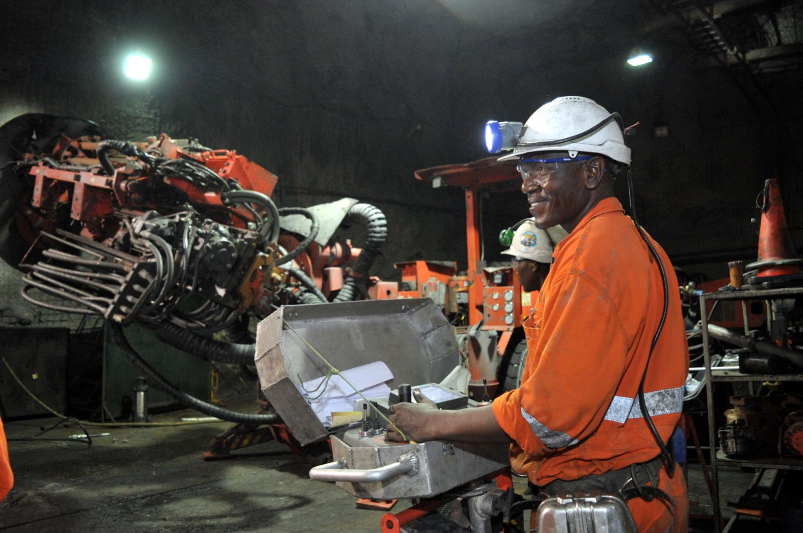 Mtaalamu wa kuchoronga miamba chini ya ardhi wa mgodi wa dhahabu wa Bulyanhulu, akiwapatia maelezo ya namna kazi hiyo inavyofanyika