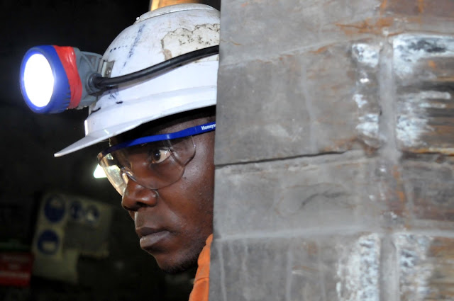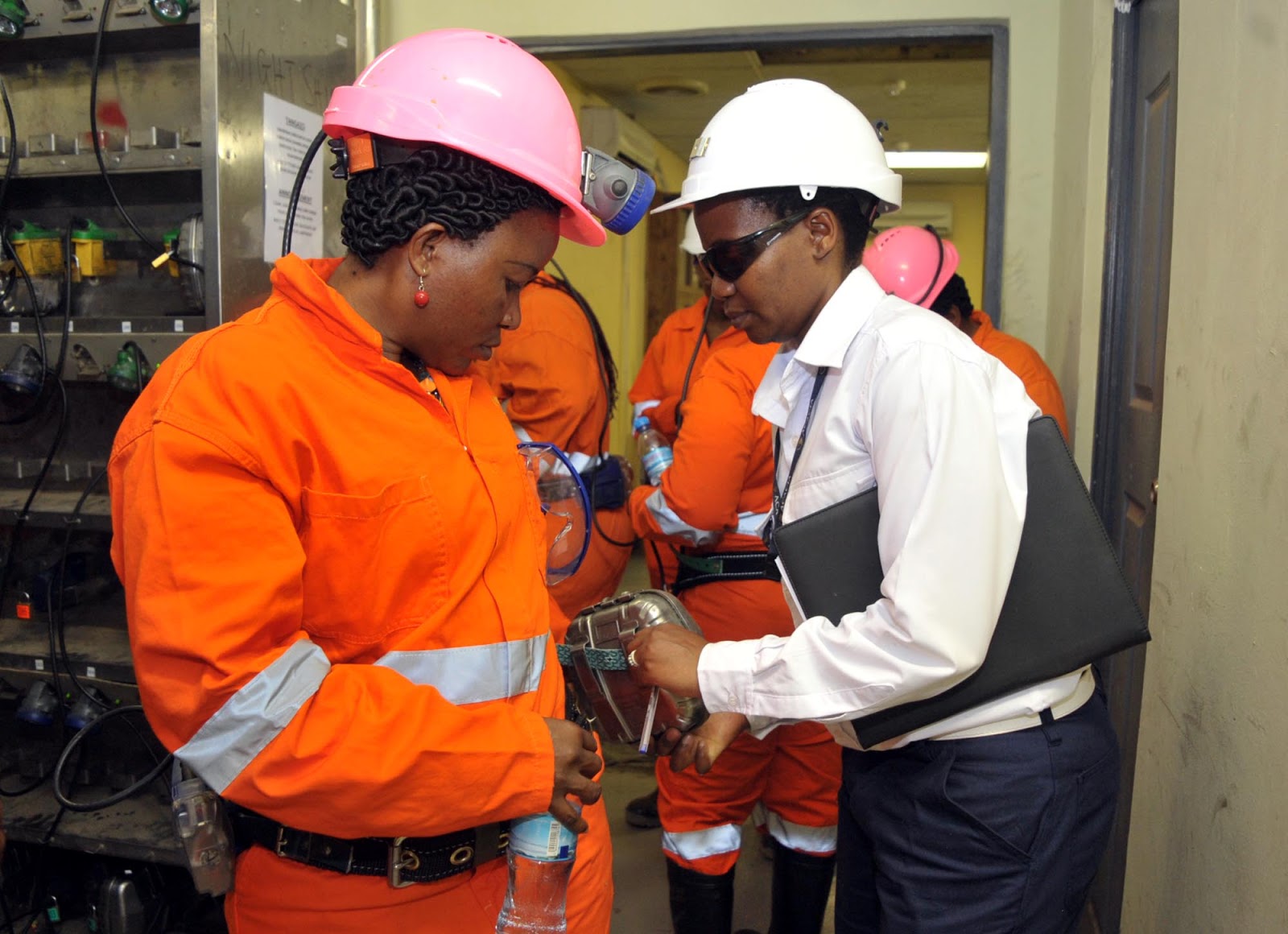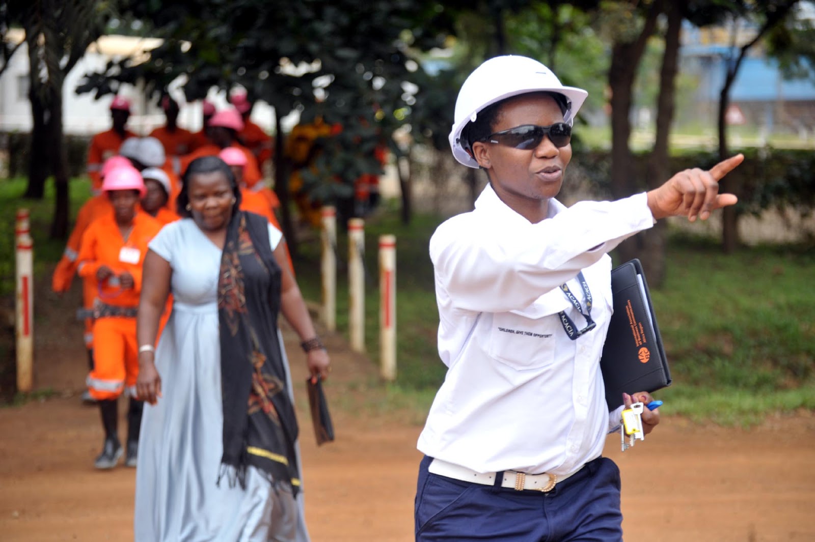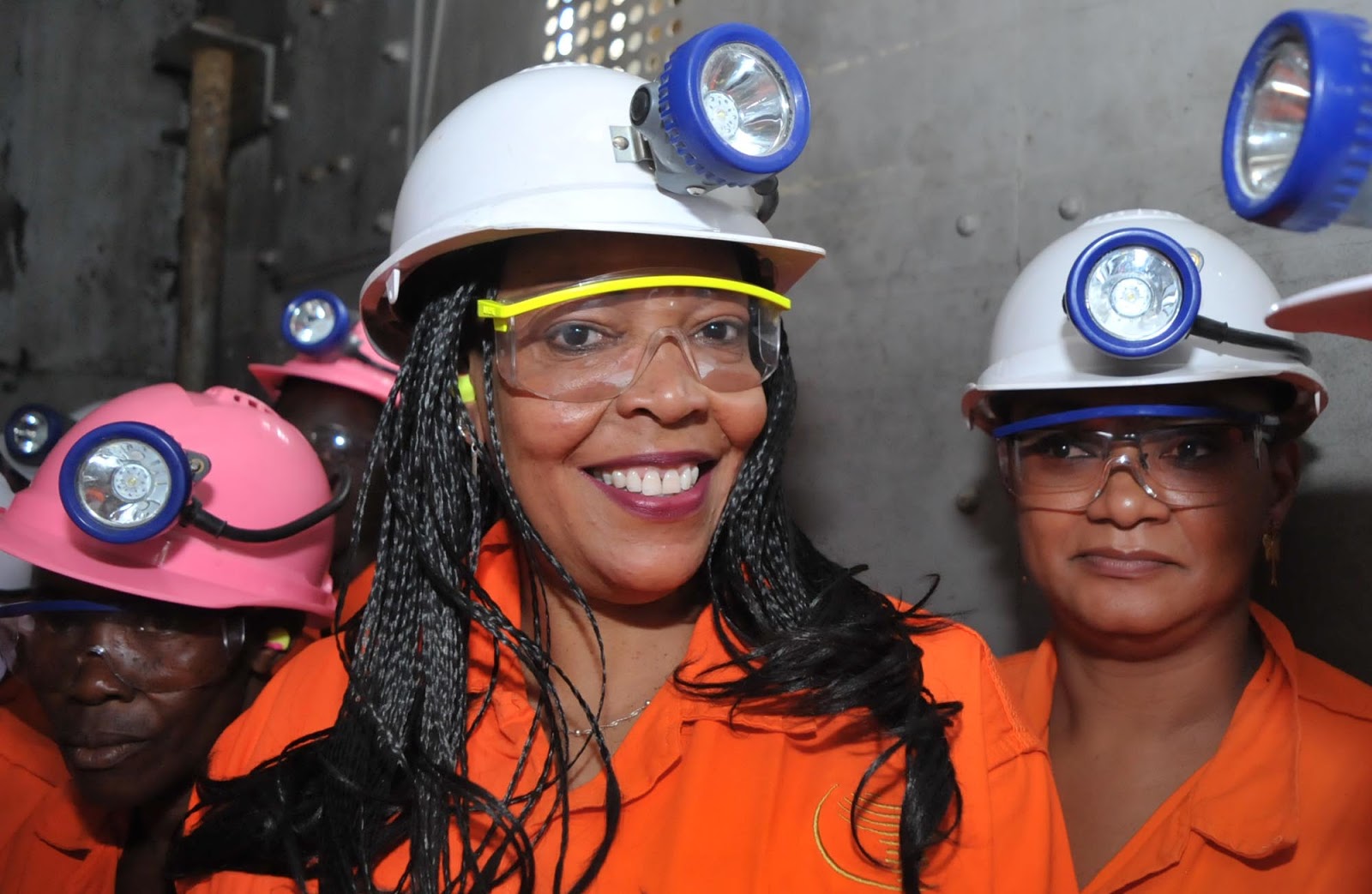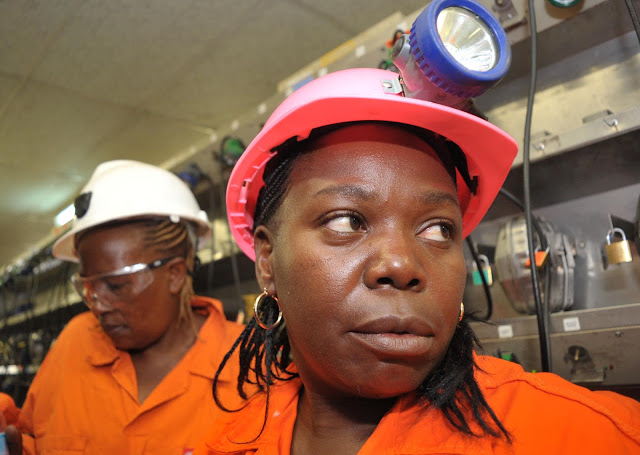 Baadhi ya akina mama wakiwa chini ya ardhi umbali wa kilomita 2 kuona kazi ya uchimbaji madini inavyofanywa.