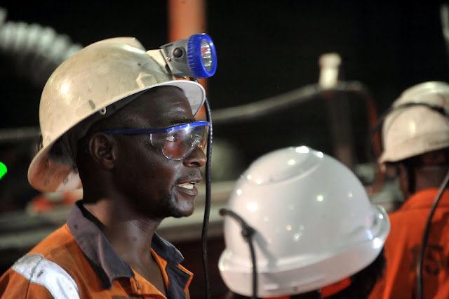 Hapa akina mama wako chini ya ardhi umbali wa kilomita 2 kutoka uso wa ardhi, wakipatiwa maelezo ya namna miamba inavyochorongwa kuipata dhahabu