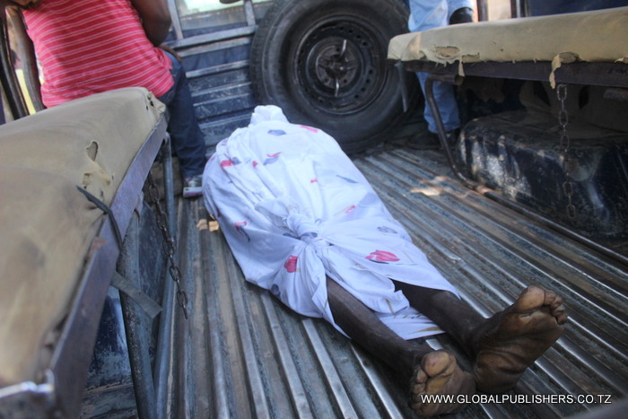 Mwili wa maehemu Askofu wa Kanisa la Taliteha, Ubungo jijini Dar, Fred Mwarusi ukiwa kwenye gari la polisi.