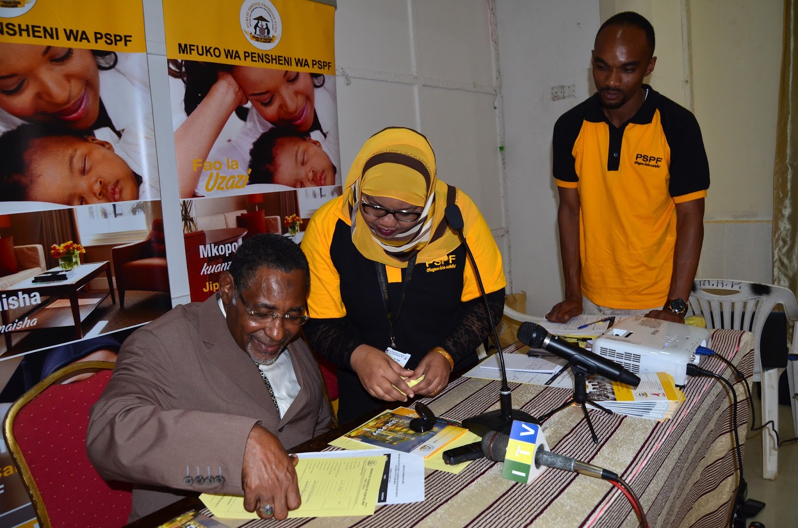 Afisa PSPF Ndg. Hadji Jamadari akitowa maelezo jinsi ya kujiunga na Mfuko wa PSPF kwa mafao ya kujichangia kwa hiari kupitia mfuko huo kwa Wananchi wasio katika Sekta rasmin jinsi wanavyoweza kunufaika kupitia kuchangia mafao kwa hiari.
