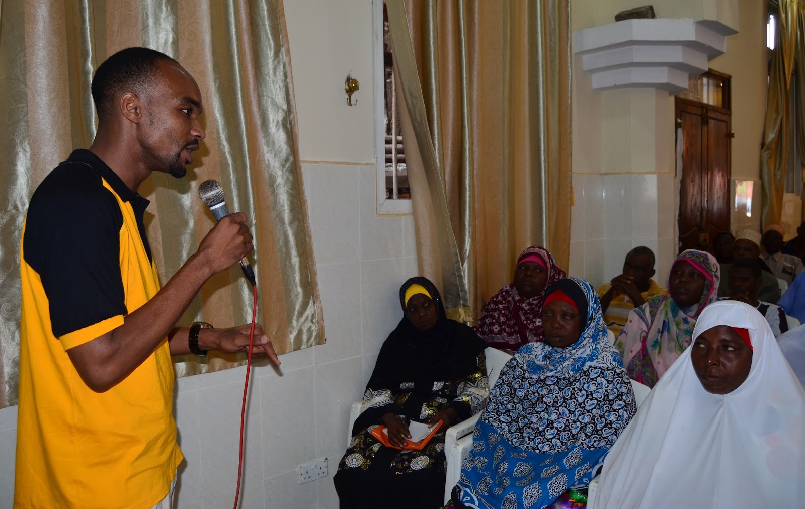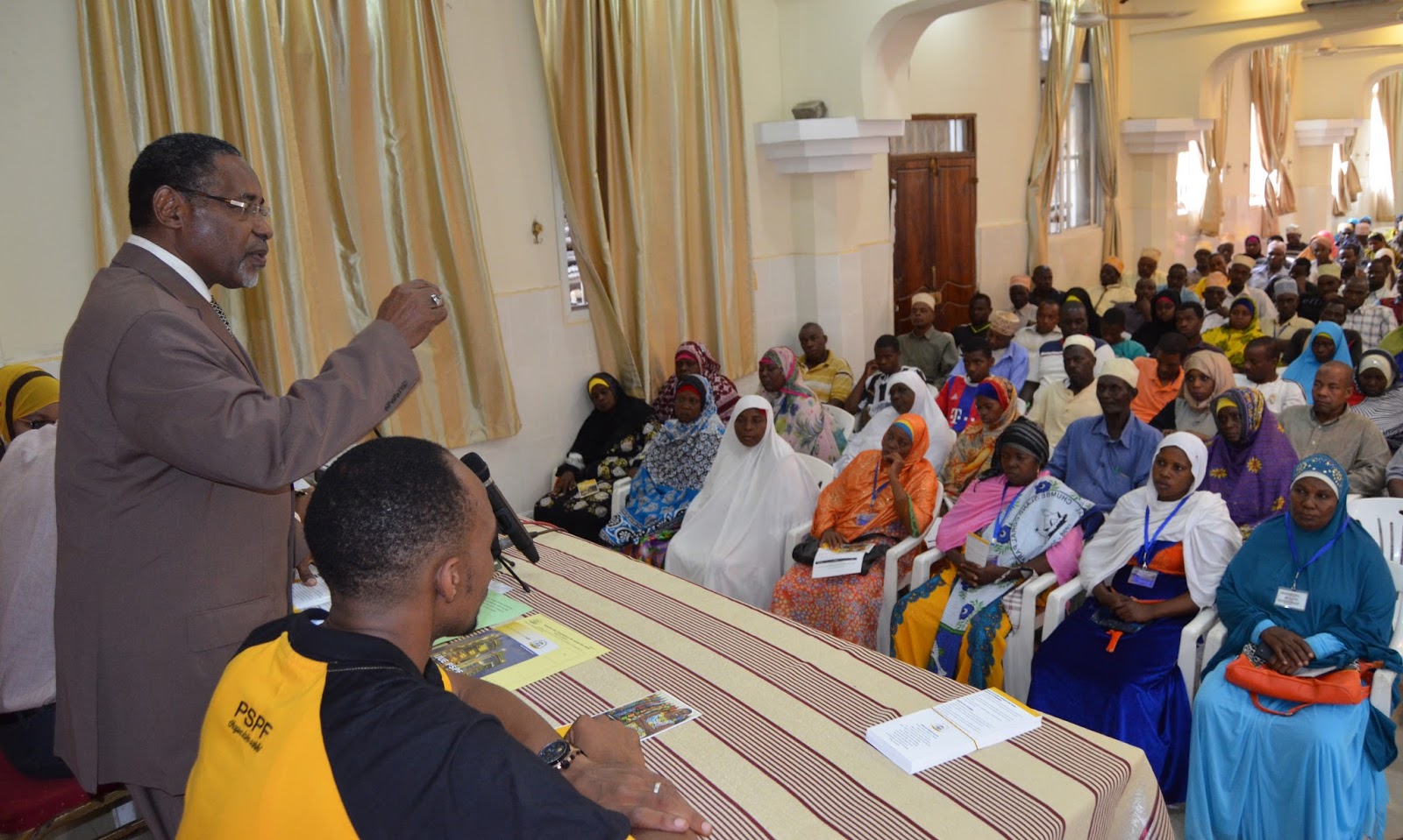 Afisa wa PSPF Ndg. Hadji Jamadari akitowa maelezo ya moja ya fomu ya kujiunga na Mfuko wa PSPF kupitia Michango ya Hiara kwa Wananchi wasiokuwa katika Sekta rasmin, mkutano huo umewashirikisha Wavuvi, Wachimba Mchanga, Magari ya Mizigo ya Mchanga na Kifunzi na Umoja wa Jumuiya wakulima wa mbogamboga Zanzibar.