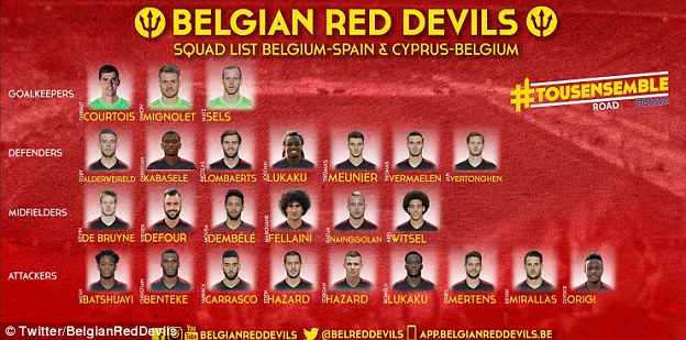 Hiki ndicho kikosi atakachokifundisha Hnery, wamo akina Eden Hazard, Marouane Fellaini na Kevin De Bruyne.