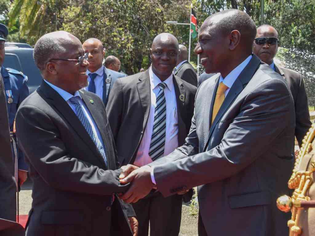 Magufuli akisalimiana na Makamu wa Rais wa Kenya, William Ruto.