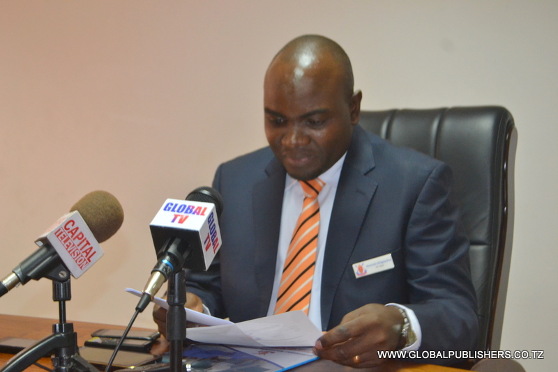 Akisoma taarifa yake kwa wanahabari (hawapo pichani).
