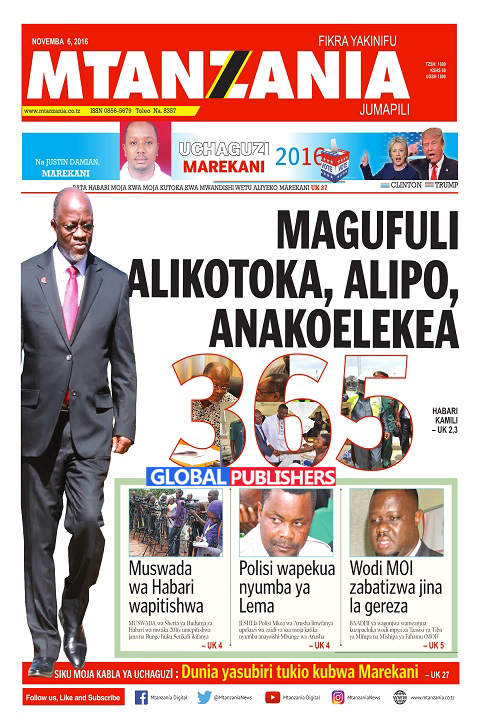 Magazeti Yote ya Tanzania Leo Jumapili Novemba 6, 2016 Yako Hapa