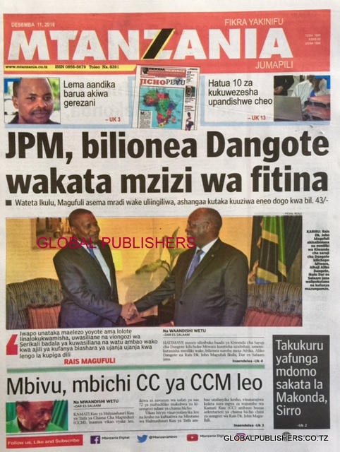 Angalia kilichoandikwa katika magazeti ya Tanzani leo Desemba 12, 2016. Pia usikose kutembelea tovuti hii mara kwa mara kwa habari motomoto zinazotokea kila kona ya dunia.