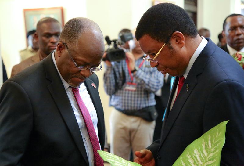 Rais John Magufuli akisalimiana na Waziri Mkuu, Kassim Majaliwa Ikulu jijini Dar es salaam Desemba 23, 2016. (Picha na Ofisi ya Waziri Mkuu)