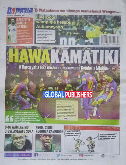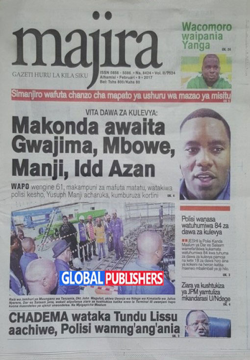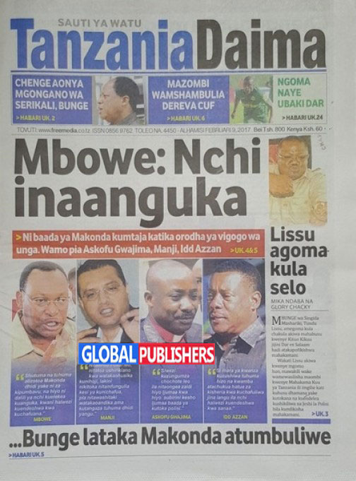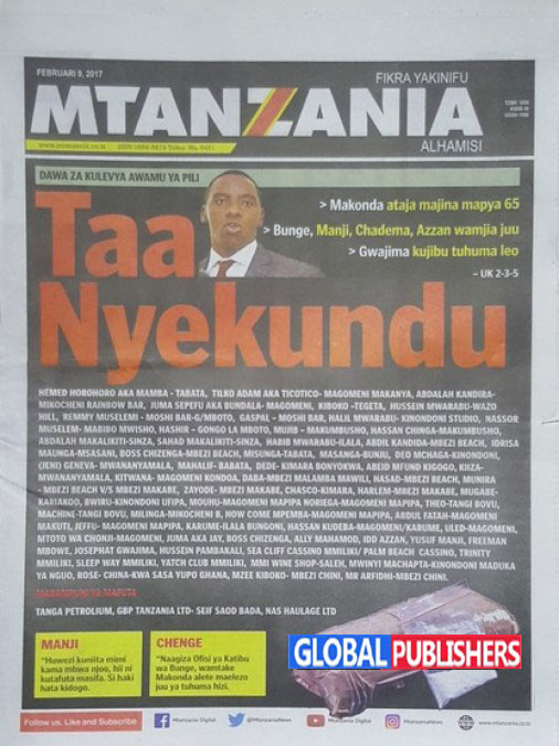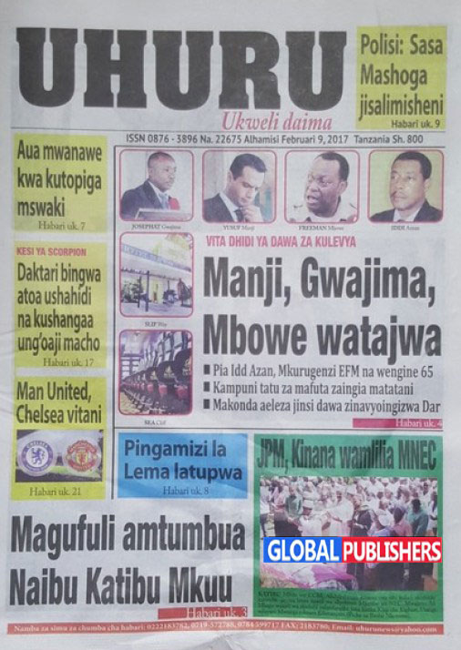 Hapa tumekuanikia kurasa za mbele na za nyuma za magazeti yote ya Tanzania leo, Februari 9, 2017. Ni yale ya Hardnews, Udaku na Michezo.