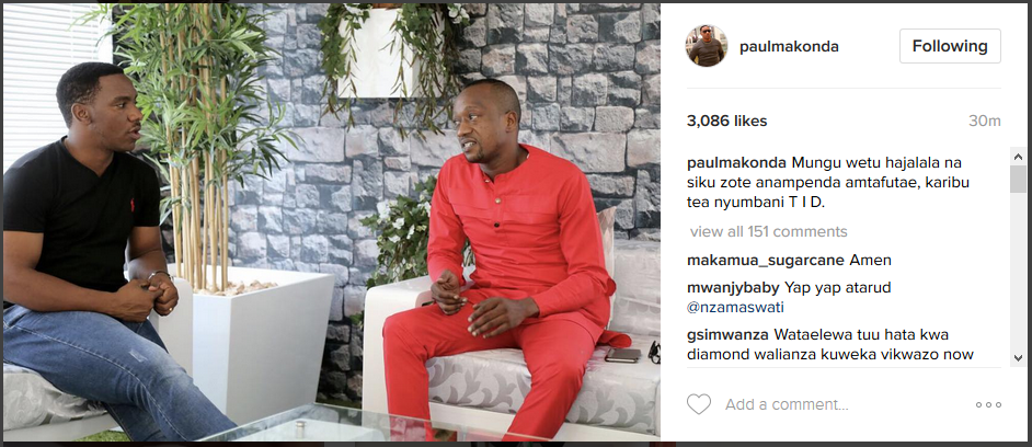 DAR ES SALAAM: Sekeseke la madawa ya kulevya bado linaendelea kuunguruma Jijini Dar es Salaam na baadhi ya maeneo ya nchi. Leo, Jumamosi Februari 11 2017 Msanii wa Bongo Fleva Khalid Mohammed, T.I.D amemtingia nyumbani Mkuu wa Mkoa wa Dar es Salaam, Paul Makonda kufanya naye mazungumzo baada ya kulala mahabusu kwa siku kadhaa juma lililopita.