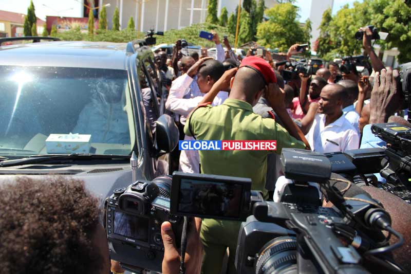 Wanahabari wakiwa mbele ya Gari la Nape.