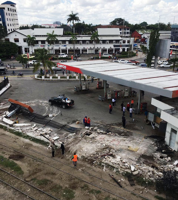 DAR ES SALAAM: Sehemu ya Kituo cha Mafuta cha Gapco kilichopo eneo la Kamata jijini Dar es Salaam, kimebomolewa mapema leo kwa kile kilichoelezwa kuwa kipo ndani ya eneo la reli.