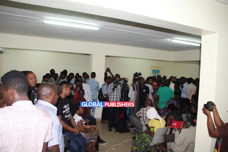 Waziri Dkt. Mwakyembe akiwasili na ROMA ili kuzungumza na wanahabari.