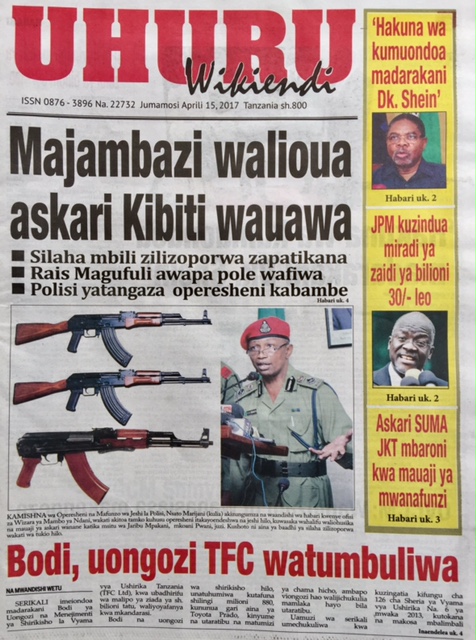 Hapa tumekuanikia kurasa za mbele na za nyuma za magazeti yote ya Tanzania leo, April 15, 2017. Ni yale ya Hardnews, Udaku na Michezo.
