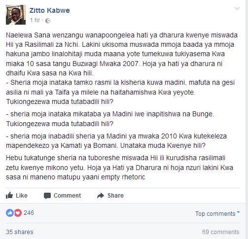 Baada ya kauli hiyo ya Mnyika aliyoitoa jana Bungeni, leo Zitto Kabwe(Mbunge wa Kigoma-ACT Wazalendo) amepingana na kauli hiyo ambapo amesema Hoja ya hati ya dharura anayoizungumzia Mnyika ni dhaifu kwa sasa.
