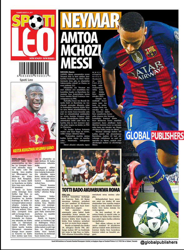 Hapa tumekuanikia kurasa za mbele na za nyuma za magazeti yote ya Tanzania leo, Agosti 3, 2017. Ni yale ya Hardnews, Udaku na Michezo.