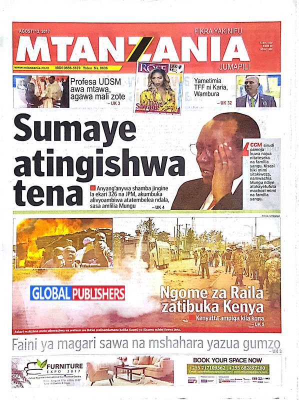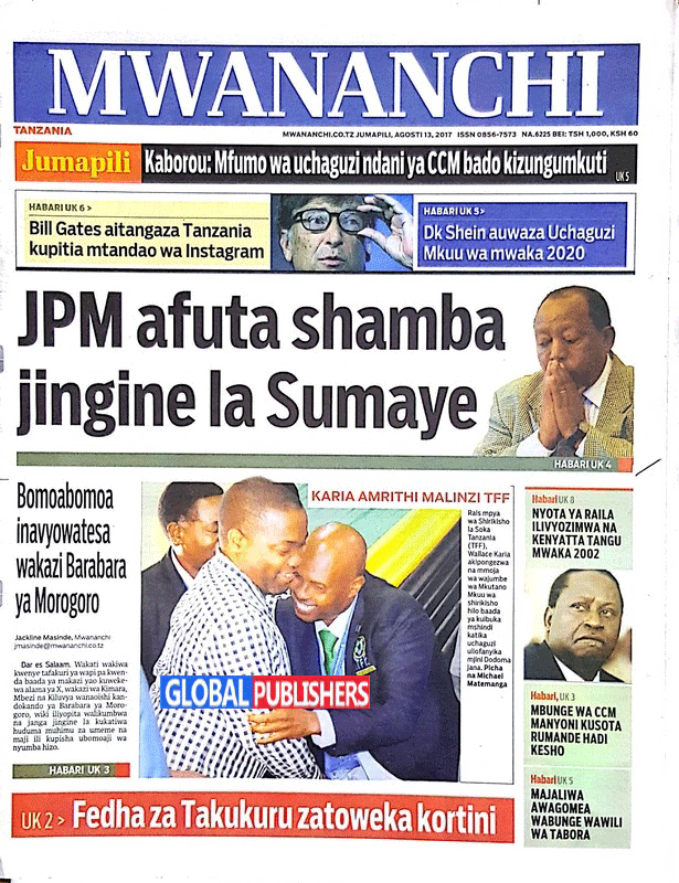 Hapa tumekuanikia kurasa za mbele na za nyuma za magazeti yote ya Tanzania leo, Agosti 13, 2017. Ni yale ya Hardnews, Udaku na Michezo.