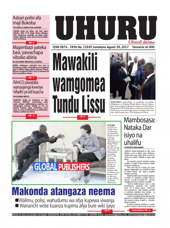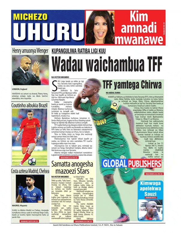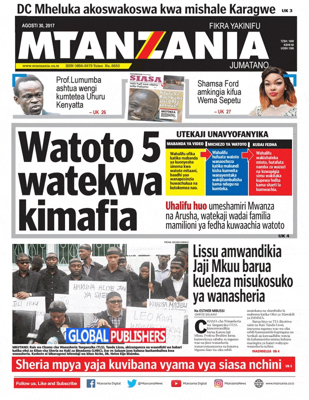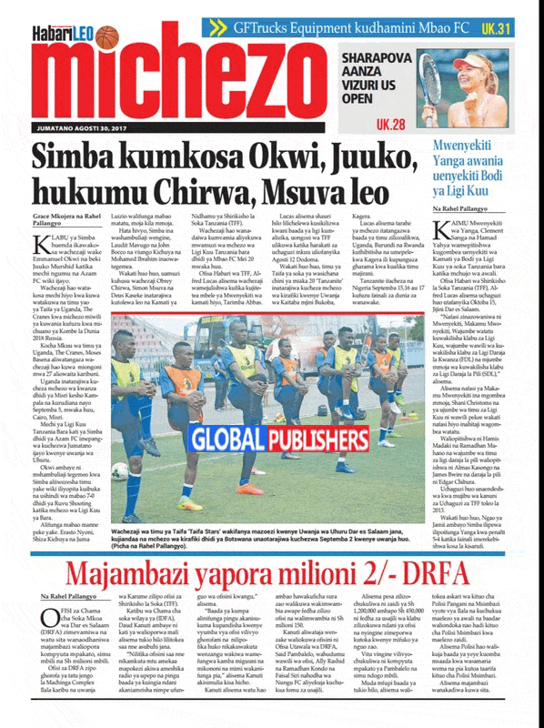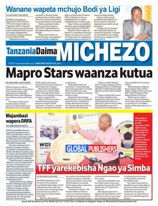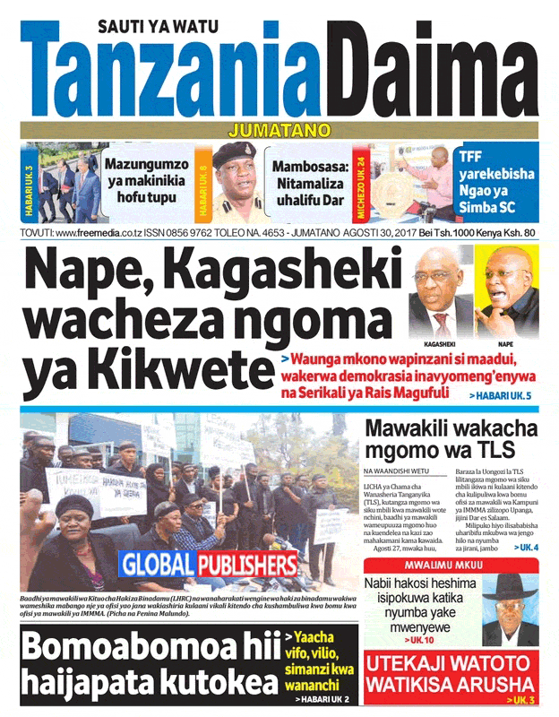 Hapa tumekuanikia kurasa za mbele na za nyuma za magazeti yote ya Tanzania leo, Agosti 30, 2017. Ni yale ya Hardnews, Udaku na Michezo.