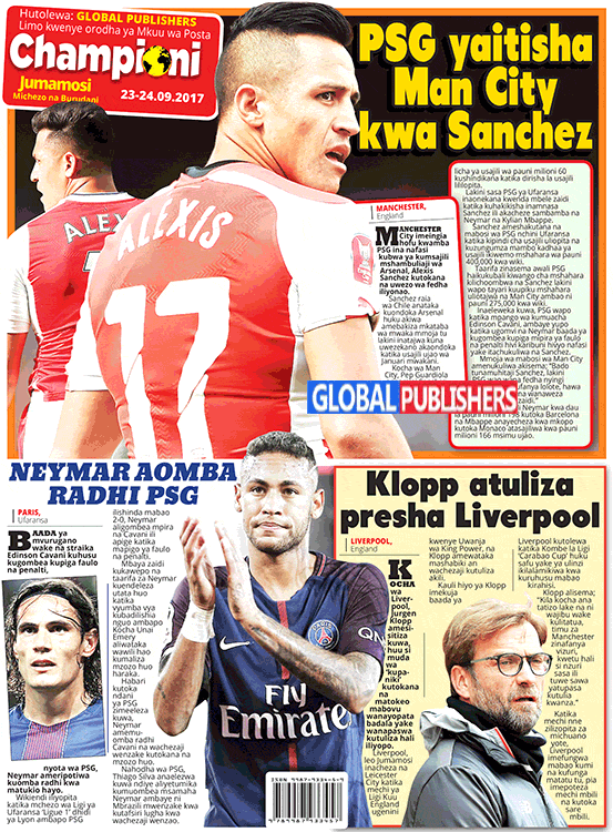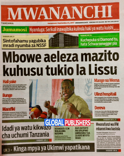 Hapa tumekuanikia kurasa za mbele na za nyuma za magazeti yote ya Tanzania leo, Septemba 23, 2017. Ni yale ya Hardnews, Udaku na Michezo.
