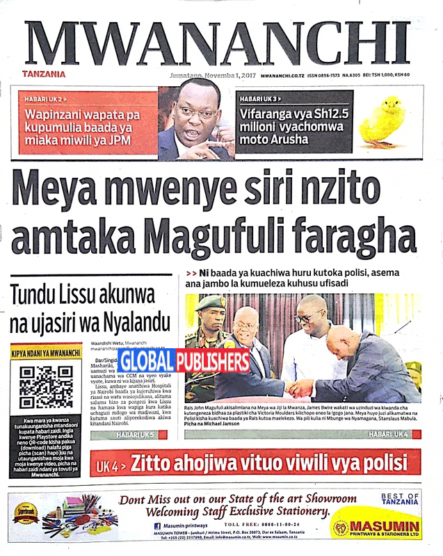 Hapa tumekuanikia kurasa za mbele na za nyuma za magazeti yote ya Tanzania leo, Novemba 1, 2017. Ni yale ya Hardnews, Udaku na Michezo.