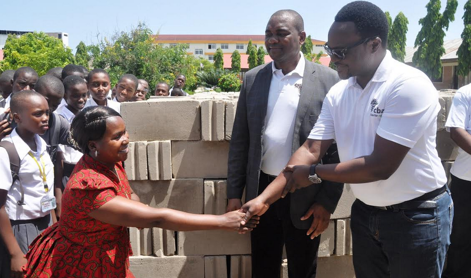 Mkurugenzi wa benki ya CBA Tanzania, Gift Shoko(kushoto) akipongezwa na afisa elimu wa sekondari wilaya ya Kindoni ,Rogers Shemwelekwa mara baada ya kupokea msaada wa mifuko ya Saruji zaidi ya 150 na matofali zaidi ya elfu 3 kwa ajili ya ujenzi wa uzio wa shule sekondari ya Kawe Ukwamani jijini Dar es Salaam. Mkurugenzi wa benki ya CBA Tanzania, Gift Shoko(kushoto) akisalimiana na baadhi ya wanafunzi wa shule ya sekondari ya Kawe Ukwamani jijini Dar es Salaam, wakati walipotembelea shule hiyo kwa ajili ya kukabidhi msaada wa mifuko ya Saruji zaidi ya 150 na matofali zaidi ya elfu 3 kwa ajili ya ujenzi wa uzio wa shule.Mkurugenzi wa benki ya CBA Tanzania, Gift Shoko(wapili kulia, Mkuu wa Idara ya Huduma za Kibenki wa benki ya CBA kwa wateja binafsi, Julius Konyani na mwalimu mkuu wa shule ya sekondari ya Kawe Ukwamani jijini Dar es Salaam Safina Egha (Kushoto) wakimsikilza mwalimu mwandamizi wa idara ya mazingira uzalishaji mali wa, Ajuaye Yusuph (kulia) akiongerea juu ya ubovu wa madarasa wakati walipotembelea shule hiyo kwa ajili ya kukabidhi msaada wa mifuko ya Saruji zaidi ya 150 na matofali zaidi ya elfu 3 kwa ajili ya ujenzi wa uzio wa shule.Mkurugenzi wa benki ya CBA Tanzania, Gift Shoko(katikati)akisisitiza jambo wakati alipokuwa akiongozwa na mwalimu mkuu wa shule ya sekondari ya Kawe Ukwamani jijini Dar es Salaam Safina Egha (Kushoto) na mwandamizi wa idara ya mazingira uzalishaji mali wa, Ajuaye Yusuph (kulia) wakati walipotembelea shule hiyo kwa ajili ya kukabidhi msaada wa mifuko ya Saruji zaidi ya 150 na matofali zaidi ya elfu 3 kwa ajili ya ujenzi wa uzio wa shule.Mkurugenzi wa benki ya CBA Tanzania, Gift Shoko(kushoto)akiongozwa na mwalimu mwandamizi wa idara ya mazingira uzalishaji mali wa shule ya sekondari ya Kawe Ukwamani jijini Dar es Salaam , Ajuaye Yusuph kukagua mazingira wakati walipotembelea shule hiyo kwa ajili ya kukabidhi msaada wa mifuko ya Saruji zaidi ya 150 na matofali zaidi ya elfu 3 kwa ajili ya ujenzi wa uzio wa shule.Mkuu wa Idara ya Huduma za Kibenki wa benki ya CBA kwa wateja binafsi. Julius Konyani, akipongezwa na Mwalimu Mkuu wa Shule ya sekondari Kawe Ukwamani jijini Dar es Salaam Safina Egha, mara baada ya kukabidhi msaada wa mifuko ya Saruji zaidi ya 150 na matofali zaidi ya elfu 3 na mkurugenzi wa benki ya CBA Tanzania, Gift Shoko(katikati)kwa ajili ya ujenzi wa uzio wa shule hiyo.Mkurugenzi wa benki ya CBA Tanzania, Gift Shoko(kushoto)akiongea na baadhi ya wanafanzi wa shule ya sekondari ya Kawe Ukwamani jijini Dar es Salaam walipotembelea shule hiyo kukabidhi msaada wa mifuko ya Saruji zaidi ya 150 na matofali zaidi ya elfu 3 kwa ajili ya ujenzi wa uzio wa shule hiyo. Kulia ni Afisa elimu Sekondari Wilaya ya Kinondoni , Rogers Shemelekwa na Mwalimu Mkuu wa shule hiyo Safina Egha.