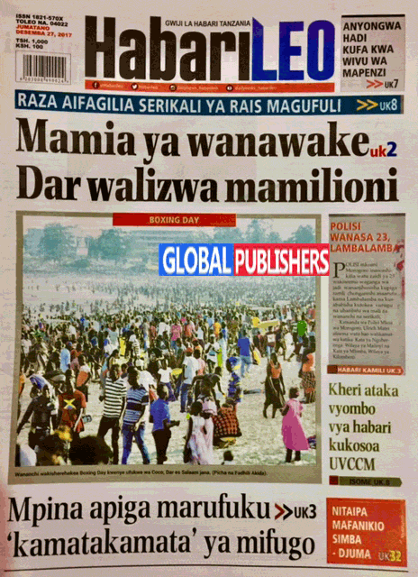 MAGAZETI YA TANZANIA LEO JUMATANO, DEC 27, 2017