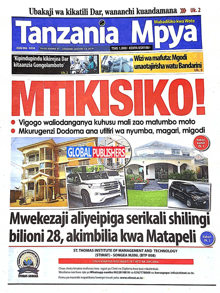 Hapa tumekuanikia kurasa za mbele na za nyuma za magazeti yote ya Tanzania leo, Jan 2, 2018. Ni yale ya Hardnews, Udaku na Michezo.