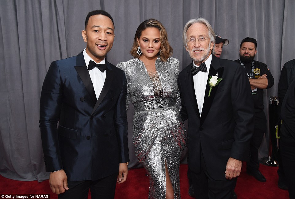 Kutoka kushoto ni John Legend  na mkewe, Chrissy Teigen  wakiwa na Neil Portnow .