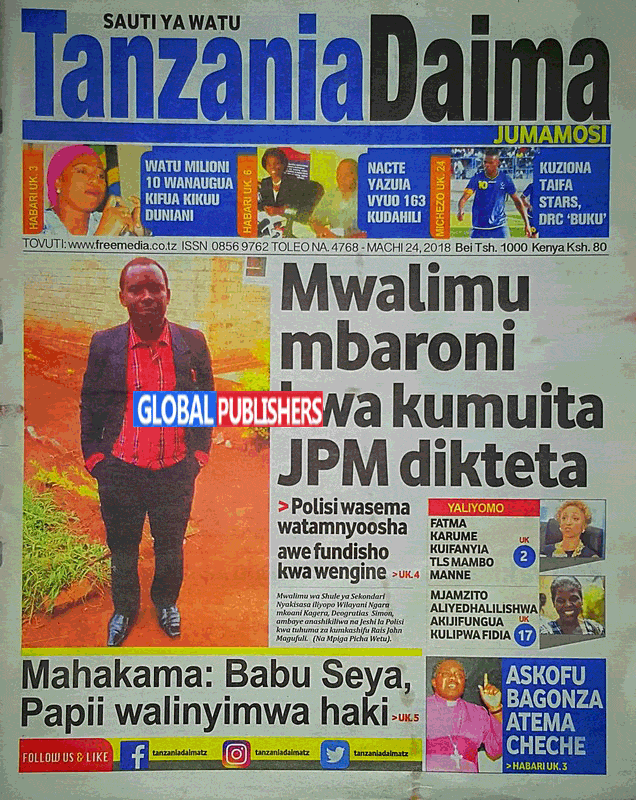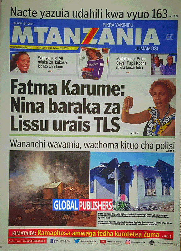 MAGAZETI YA TANZANIA LEO JUMAMOSI, MACHI 24, 2018