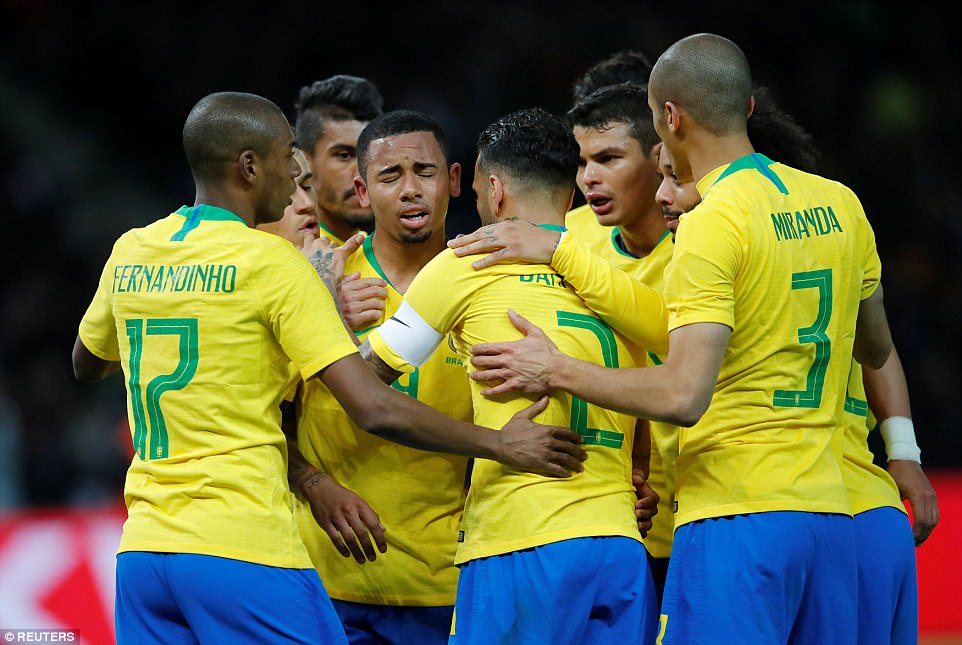 Brazil (4-3-3): Alisson; Alves; Silva; Miranda; Marcelo; Fernandinho; Casemiro; Paulinho; Willian; Jesus; Coutinho (Costa 72)