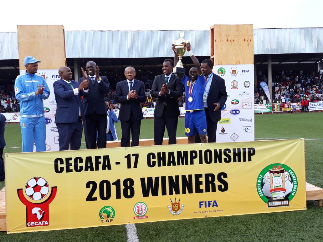 Mabingwa hao wapya wa Afrika Mashariki na Kati, wamekabidhiwa kombe hilo na mgeni rasmi wa fainali hiyo ambaye ni Rais wa shirikisho la soka barani Africa Ahmed Ahmed.