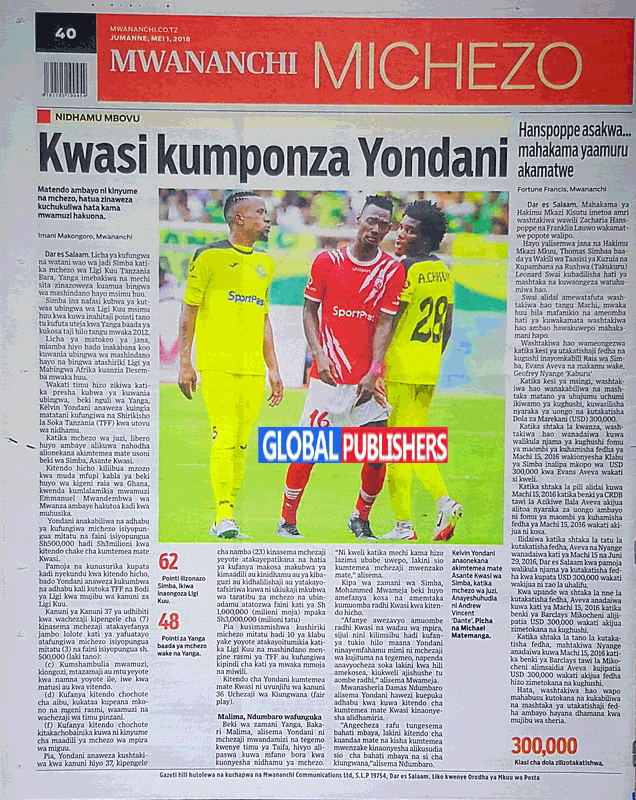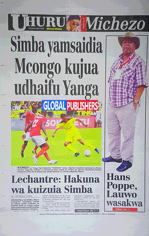MAGAZETI YA TANZANIA LEO JUMANNE, MEI 1, 2018 Global Publishers May 1, 2018 SHARE THIS: Hapa tumekuanikia kurasa za mbele na za nyuma za magazeti yote ya Tanzania leo, Mei 1, 2018. Ni yale ya Hardnews, Udaku na Michezo. Usipitwe na Matukio, Install App Yako ya Kijanja na Namba Moja Tanzania ya Global Publishers Android ===>GooglePlay iOS ===>AppStore SHARE THIS: