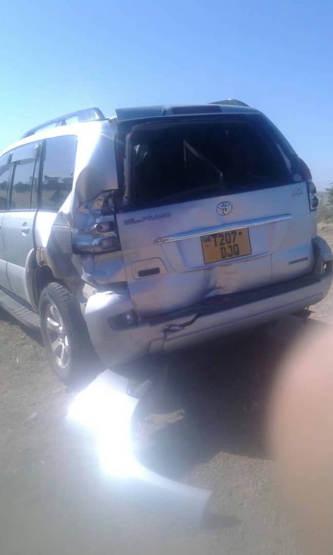 Wakati huohuo, basi la Rombo liligonga gari la madiwani kwa nyuma katika tafrani iliyofuatia baada ya kuchomoka kwa tairi la gari la polisi.