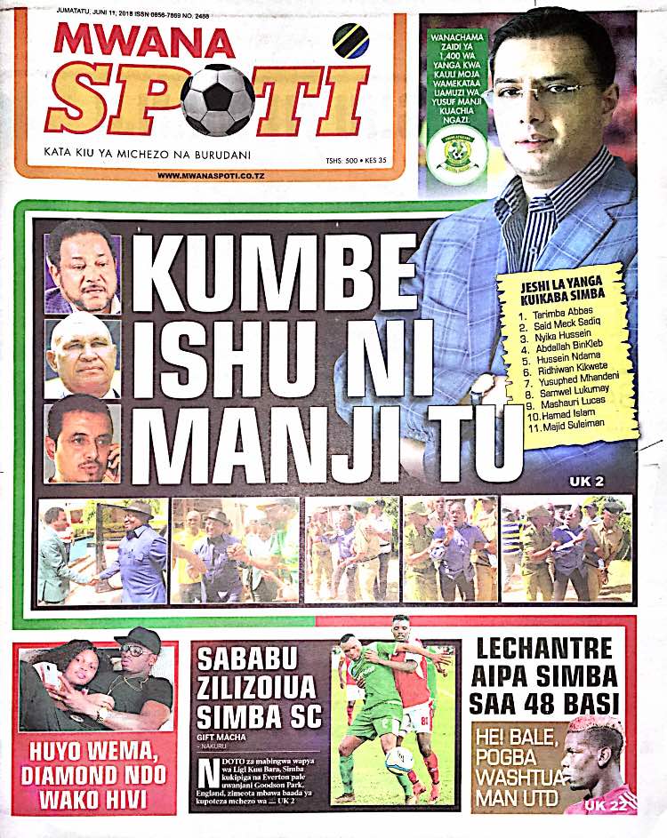 MAGAZETI YA TANZANIA LEO JUMATATU, JUNI 11, 2018 Global Publishers June 11, 2018 SHARE THIS: Hapa tumekuanikia kurasa za mbele na za nyuma za magazeti yote ya Tanzania leo, Juni 11, 2018. Ni yale ya Hardnews, Udaku na Michezo. Usipitwe na Matukio, Install App Yako ya Kijanja na Namba Moja Tanzania ya Global Publishers Android ===>GooglePlay iOS ===>AppStore SHARE THIS: