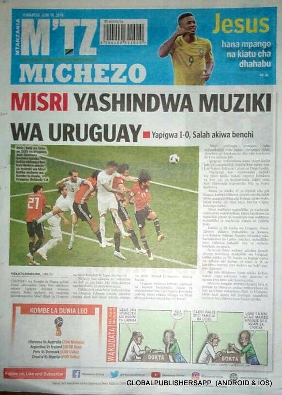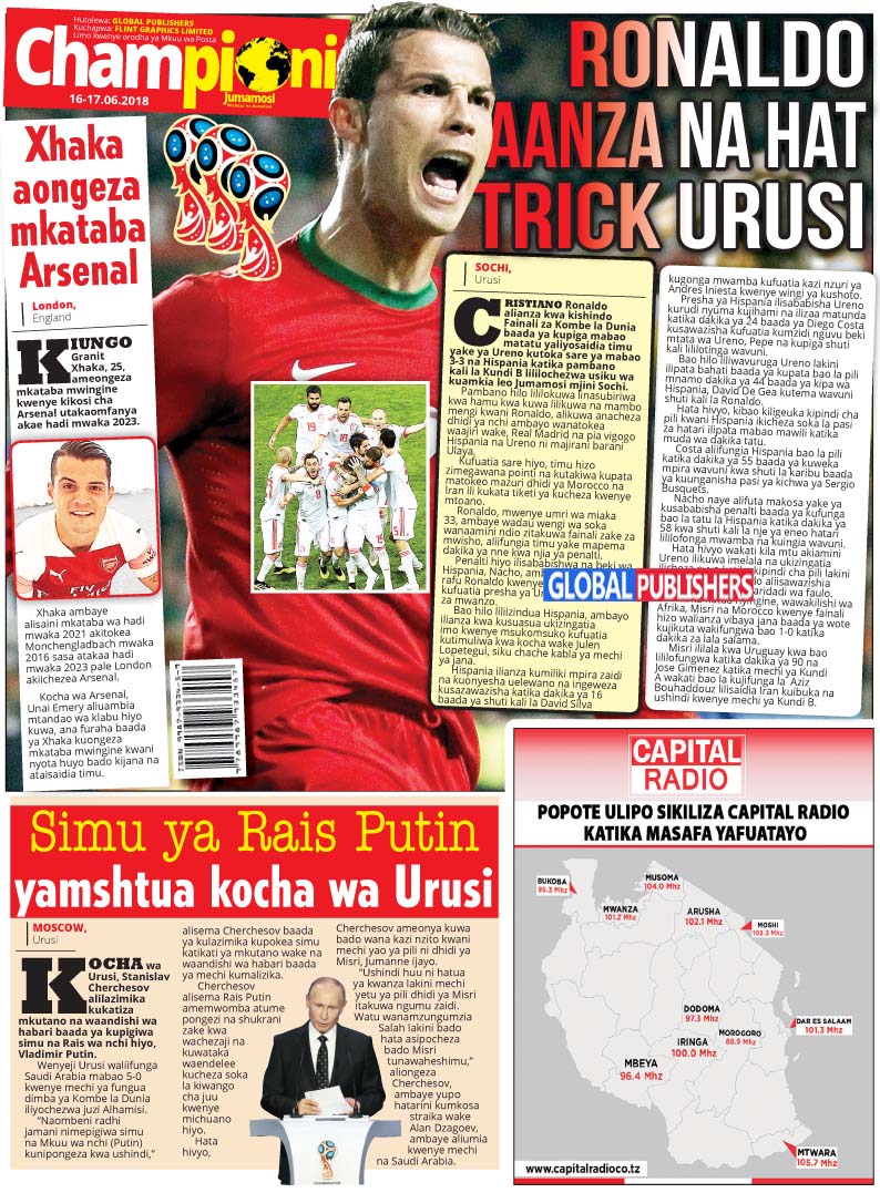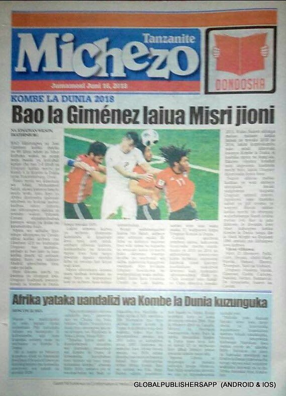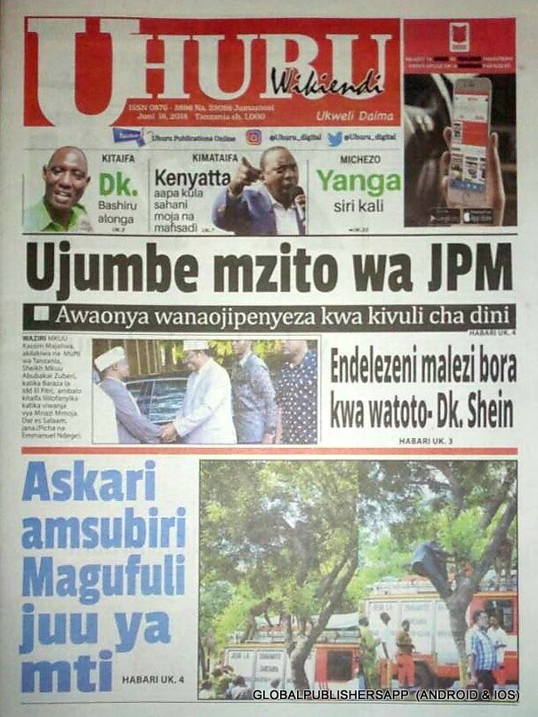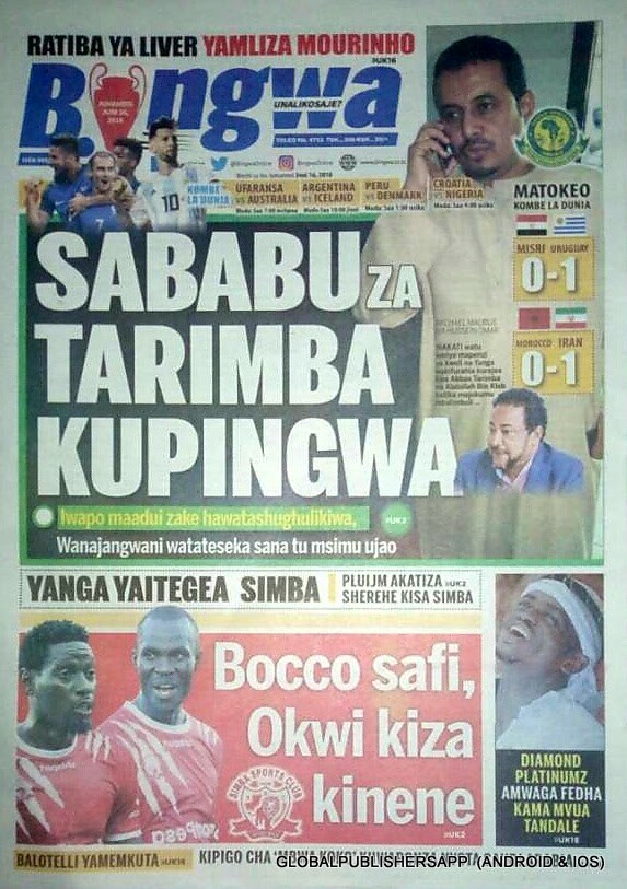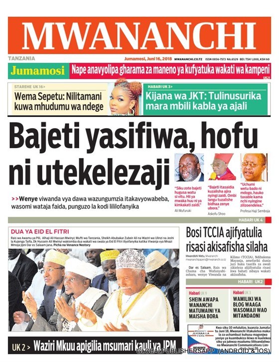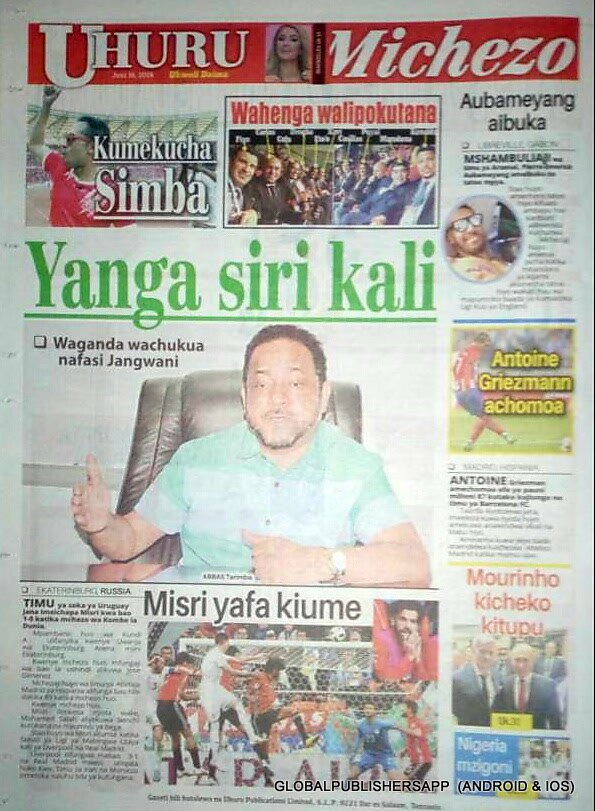 MAGAZETI YA TANZANIA LEO JUMAMOSI, JUNI 16, 2018 Global Publishers June 16, 2018 SHARE THIS: Hapa tumekuanikia kurasa za mbele na za nyuma za magazeti yote ya Tanzania leo, Juni 16, 2018. Ni yale ya Hardnews, Udaku na Michezo. Usipitwe na Matukio, Install App Yako ya Kijanja na Namba Moja Tanzania ya Global Publishers Android ===>GooglePlay iOS ===>AppStore SHARE THIS: