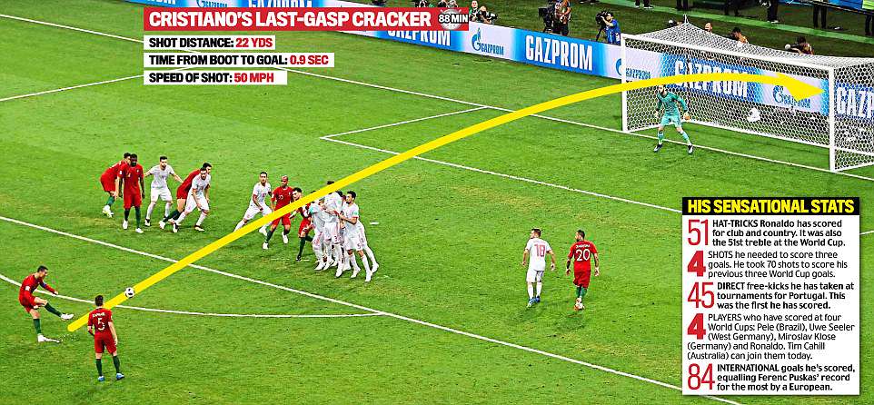 CRISTIANO Ronaldo alianza kwa kishindo Fainali za Kombe la Dunia baada ya kupiga mabao matatu yaliyosaidia timu yake ya Ureno kutoka sare ya mabao 3-3 na Hispania katika pambano kali la Kundi B lililochezwa usiku wa kuamkia leo Jumamosi mjini Sochi.