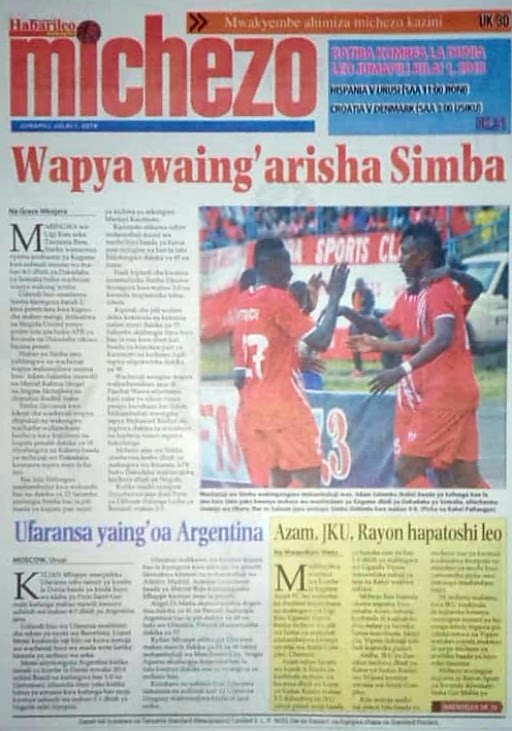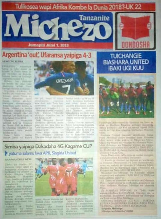 Hapa tumekuanikia kurasa za mbele na za nyuma za magazeti yote ya Tanzania leo, Julai 1, 2018. Ni yale ya Hardnews, Udaku na Michezo.