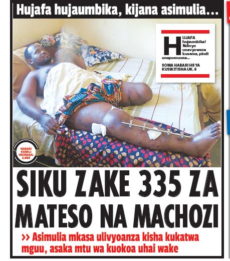 HUJAFA hujaumbika! Ndivyo unavyoweza kusema, pindi unapomuona, dereva wa basi aliyefahamika kwa jina la Peter Mbwana (pichani), mkazi wa Machimbo- Buza jijini Dar, anayeteseka kitandani kwa takriban siku 335 sasa baada ya kupata ajali mbaya.