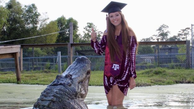 Makenzie Noland ambaye amehitimu shahada katika masuala ya sayansi ya wanyama wa porini na viumbe wa majini mwezi Aprili mwaka huu, amekuwa akipata mafunzo kwenye kituo cha kutunzia wanyama cha Beaumont ambapo ni eneo la makazi ya mamba 450 na wanyama wengine.