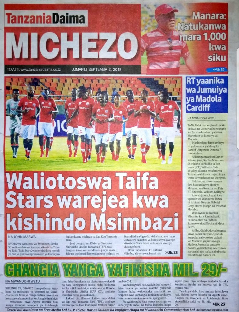 Hapa tumekuanikia kurasa za mbele na za nyuma za magazeti yote ya Tanzania leo, Septemba 2, 2018. Ni yale ya Hardnews, Udaku na Michezo.