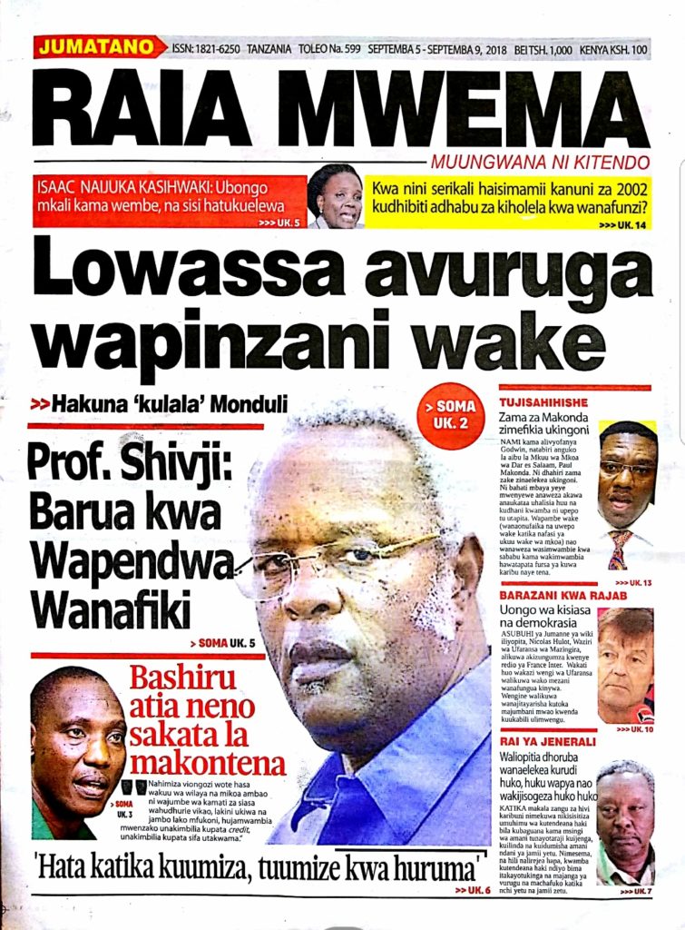 Hapa tumekuanikia kurasa za mbele na za nyuma za magazeti yote ya Tanzania leo, Septemba 5, 2018. Ni yale ya Hardnews, Udaku na Michezo.