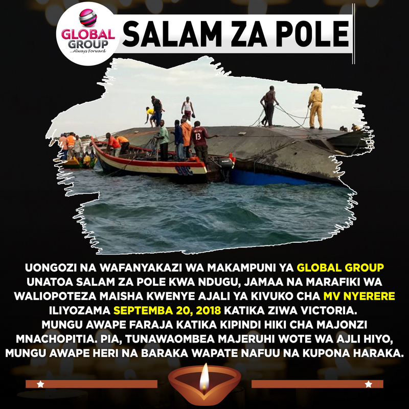 AJALI YA MV NYERERE, GLOBAL GROUP INATOA SALAM ZA POLE Global Publishers September 21, 2018 SHARE THIS: SHARE THIS: