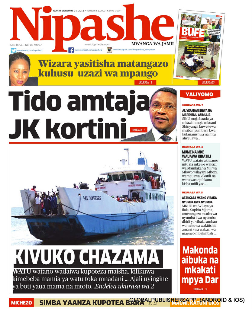 Hapa tumekuanikia kurasa za mbele na za nyuma za magazeti yote ya Tanzania leo, Septemba 21, 2018. Ni yale ya Hardnews, Udaku na Michezo.
