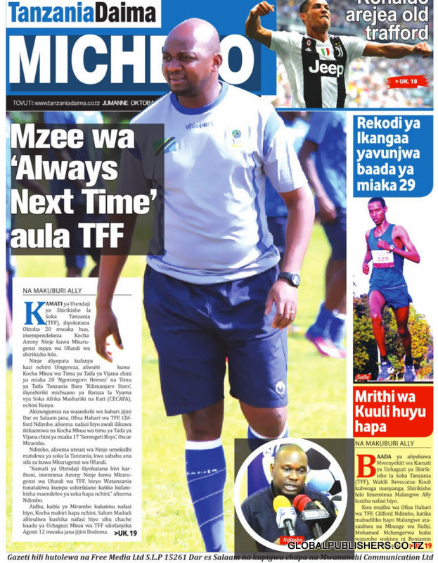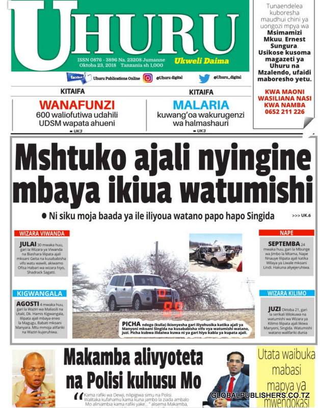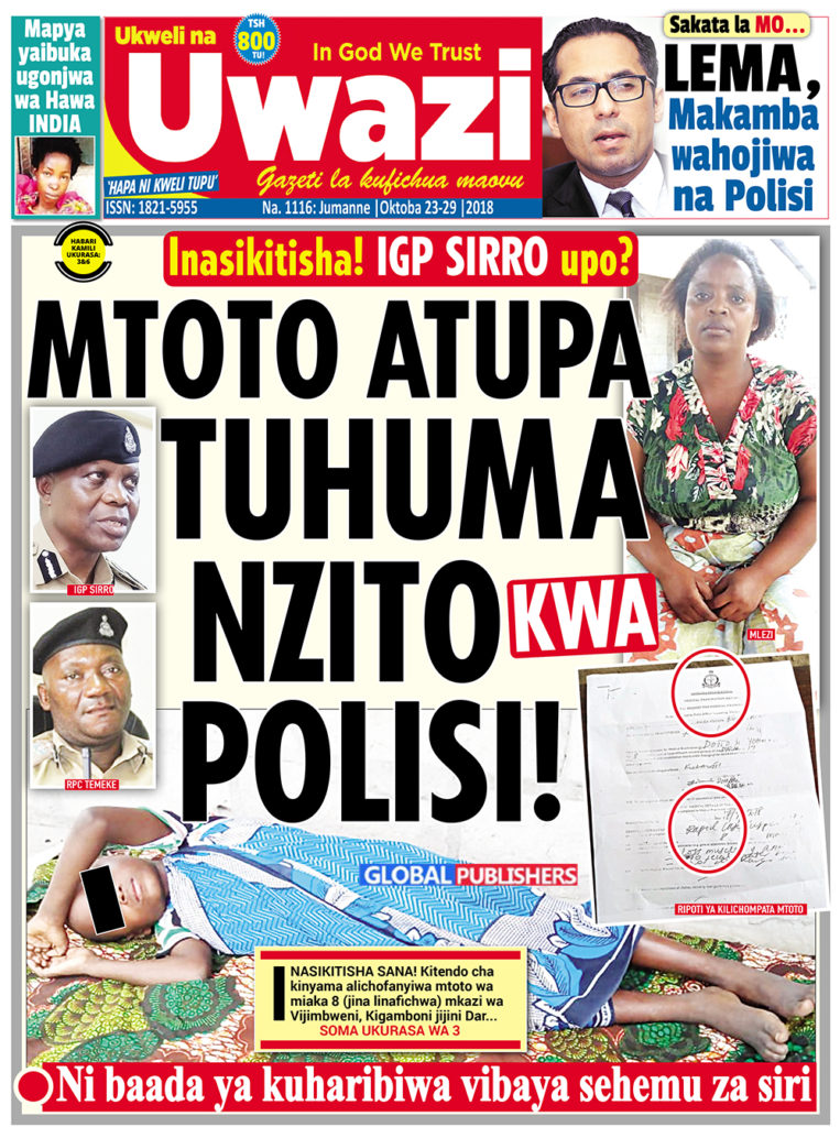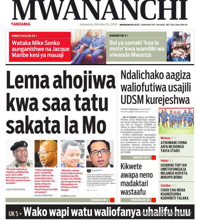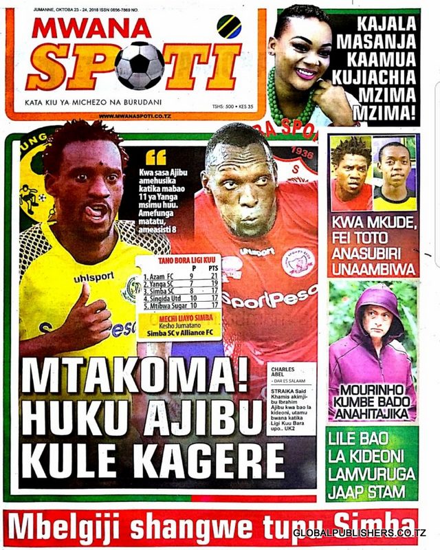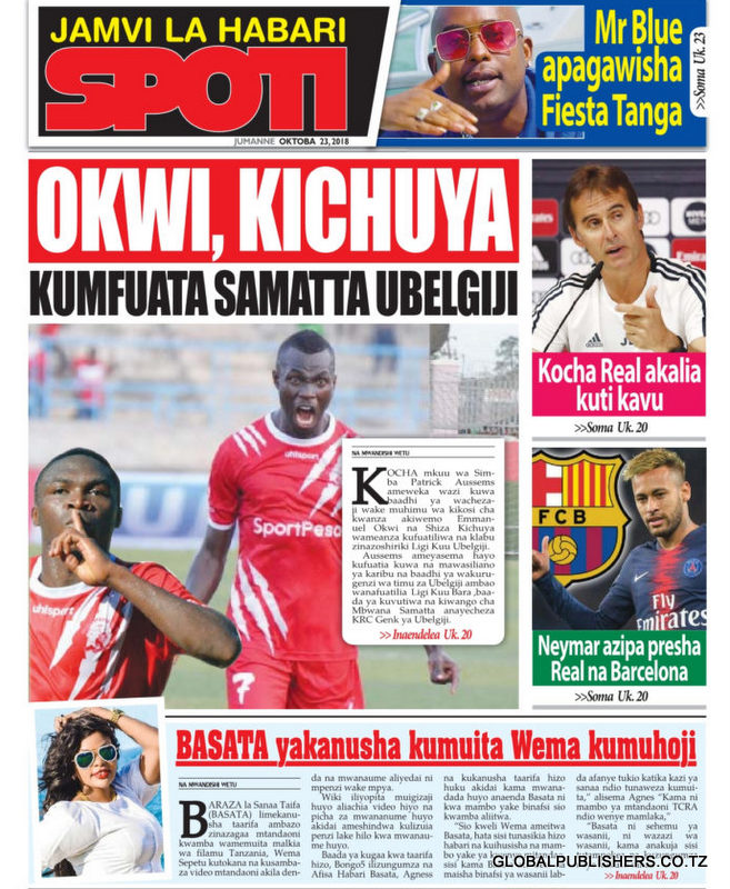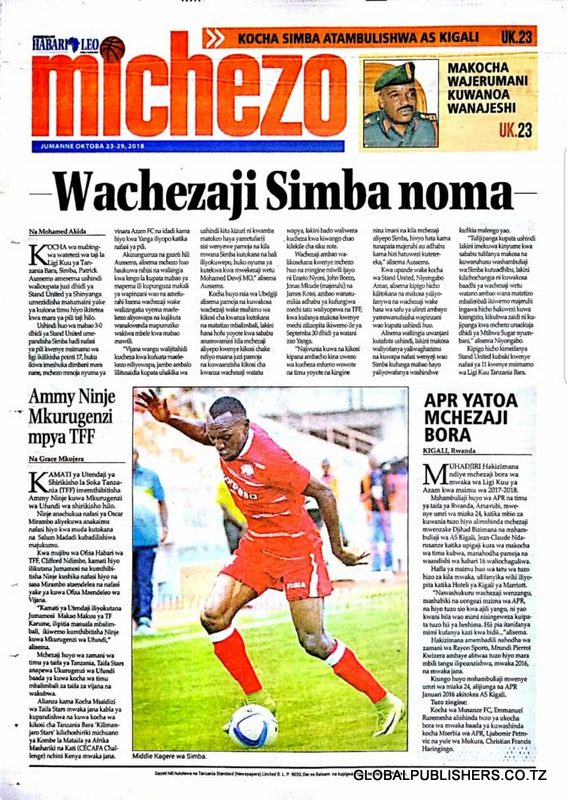 Hapa tumekuanikia kurasa za mbele na za nyuma za magazeti yote ya Tanzania leo Oktoba 22, 2018. Ni yale ya Hardnews, Udaku na Michezo.