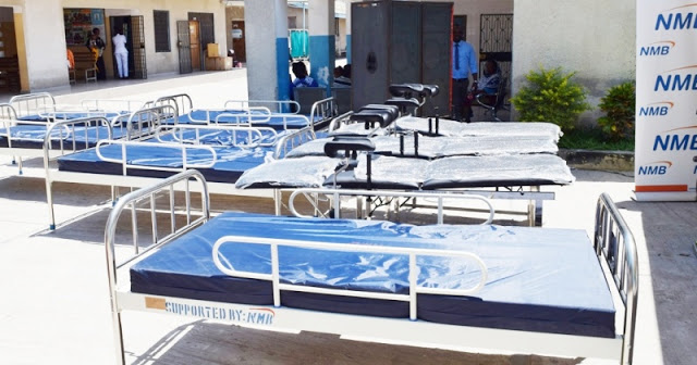 Sehemu ya vitanda vilivyotolewa na Benki ya NMB kwa Kituo cha Afya cha Kigamboni jijini Dar es Salaam. Vitanda hivyo sita (6) vikiwa vya wagonjwa wa kawaida na vitatu (3) vikiwa maalum kwa ajili ya kujifungulia wajawazito vinathamani ya shilingi milioni tano.