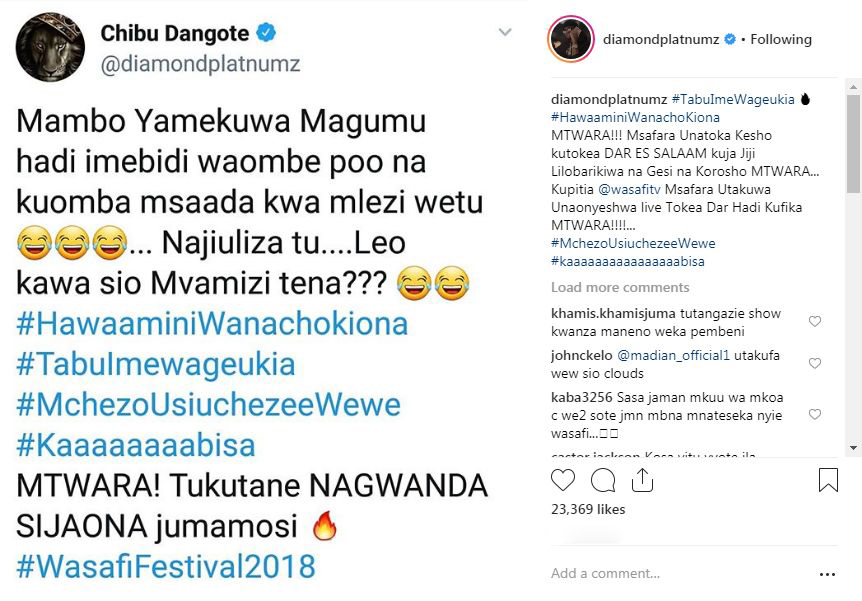 Msanii wa muziki wa Bongo Fleva, Naseeb Abdul maarufu kama ‘Diamond Platnumz’ amewapa makavu live Clouds Media kwa kwaambia kwamba wameomba poo na kumchukua mlezi wao Paul Makonda ili kuhudhuria Fiesta.