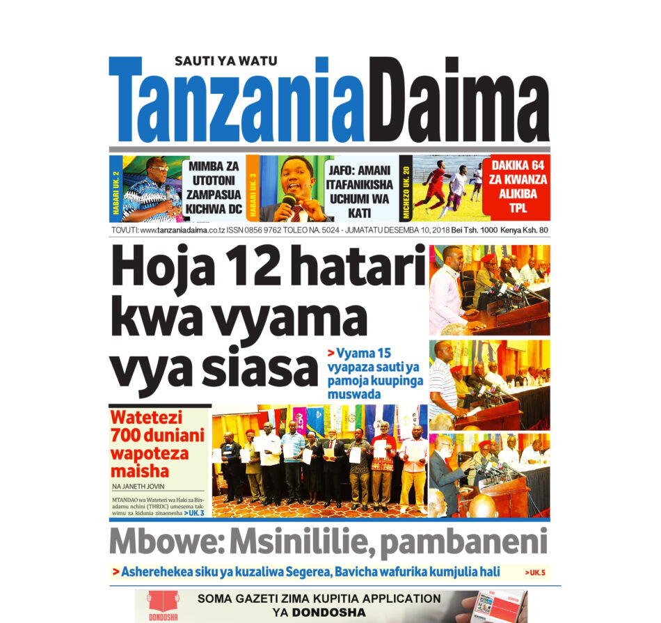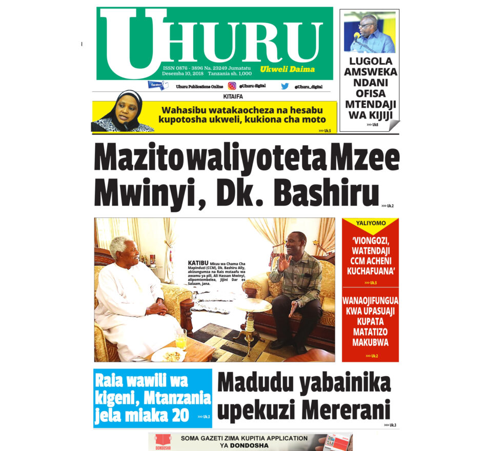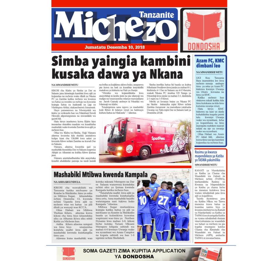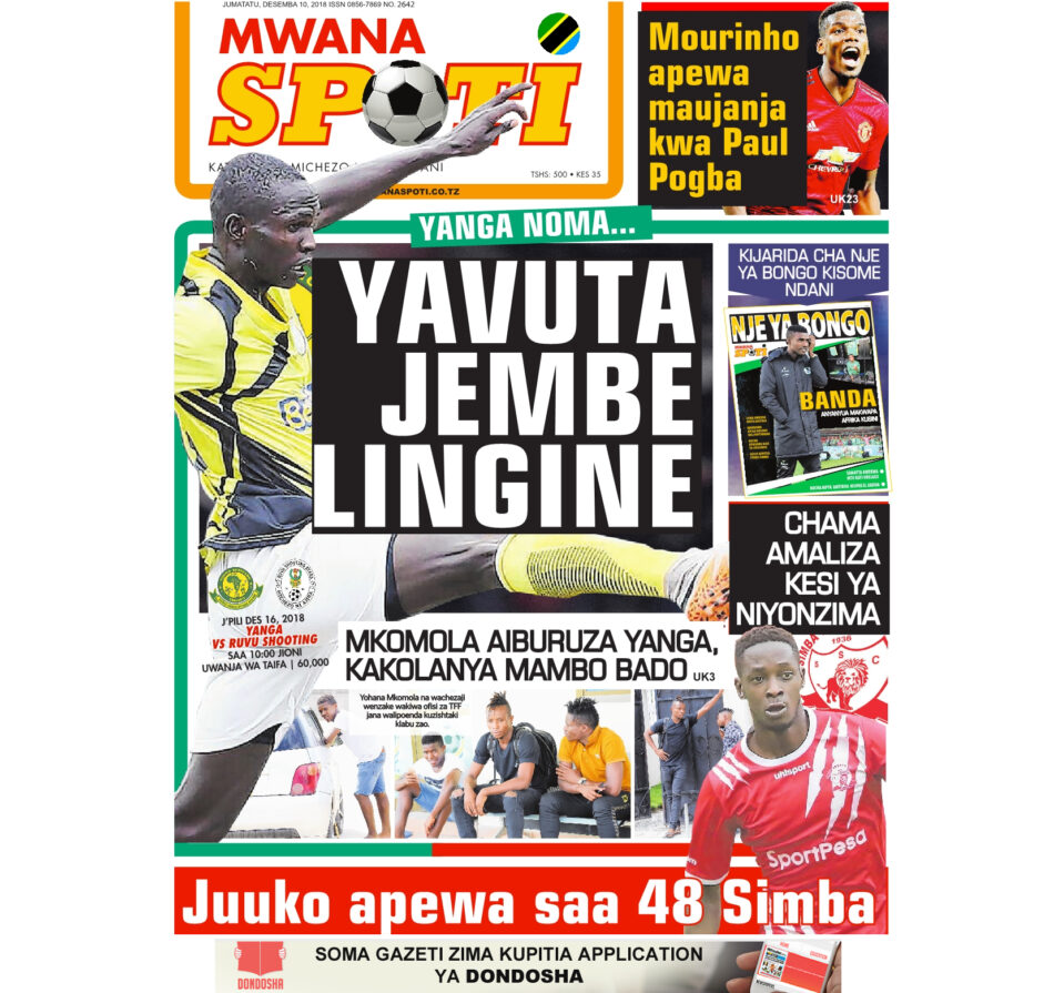 Hapa tumekuanikia kurasa za mbele na za nyuma za magazeti yote ya Tanzania leo Desemba 10, 2018. Ni yale ya Hardnews, Udaku na Michezo.
