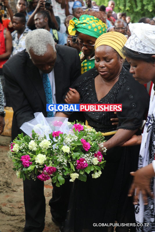Mama wa Marehemu Kibonde na mumewe mzee Kibonde wakiweka shada la maua kwenye kaburi la mtoto wao Kibonde.Watoto wa Kibonde wakiweka shada la maua kwenye kaburi la baba yao.Mtangazaji wa kipindi cha Jahazi, Gardner G Habash, kushoto akiwa na mtoto wa Ephraim Kibonde.Watoto wa marehemu wakijiandaa kuweka shada kwenye kaburi la baba yao.