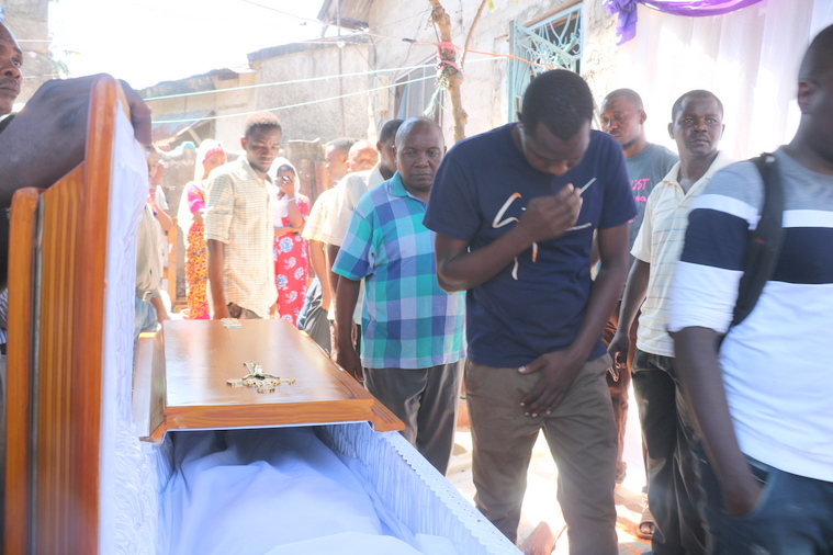 Mama marehemu, Esther Bukos akiaga mwili wa mwanaye.