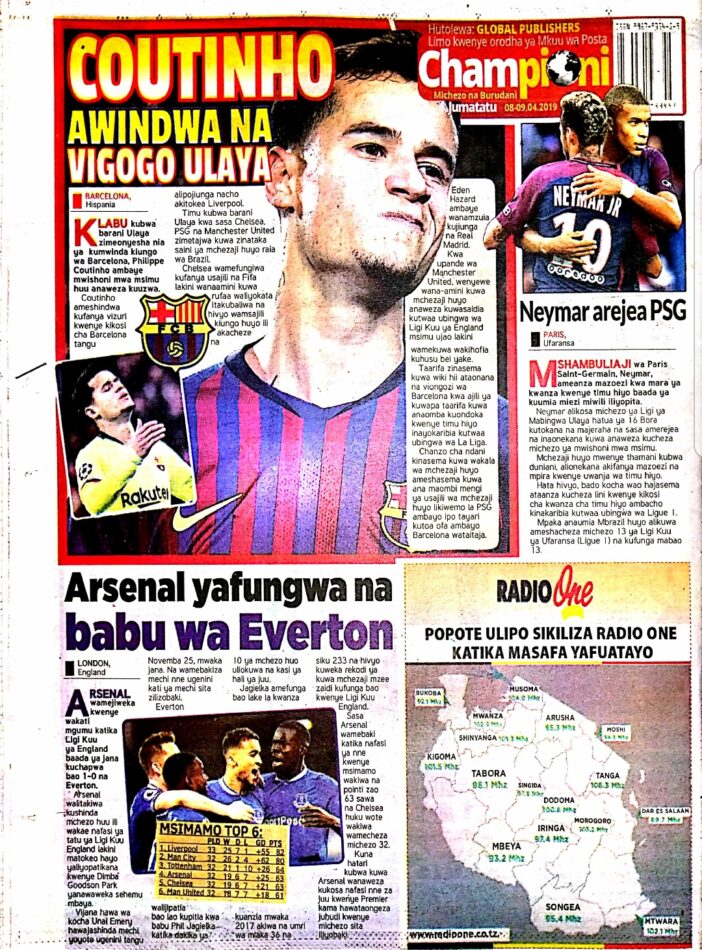 MAGAZETI YA TANZANIA LEO JUMATATU, APRILI 8, 2019 Global Publishers April 8, 2019 SHARE THIS: Hapa tumekuanikia kurasa za mbele na za nyuma za magazeti yote ya Tanzania leo APRILI 8, 2019. Ni yale ya Hardnews, Udaku na Michezo. Usipitwe na Matukio, Install App Yako ya Kijanja na Namba Moja Tanzania ya Global Publishers Android ===> GooglePlay iOS ===> AppStore SHARE THIS: